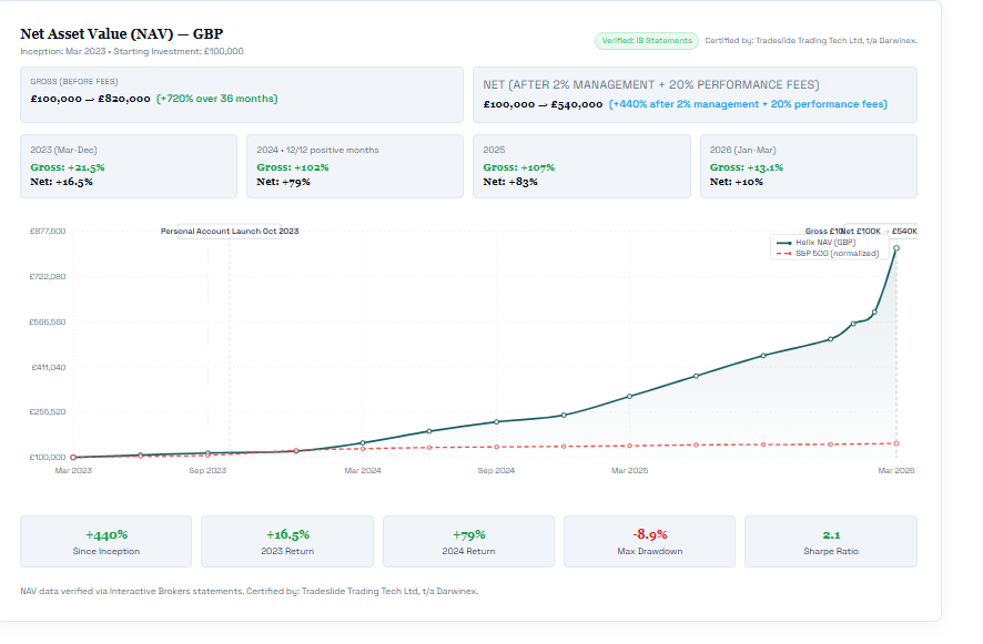 Performance certified by Tradeslide Trading Tech Ltd t/a Darwinex. Not a backtest. Statement NAV verified.