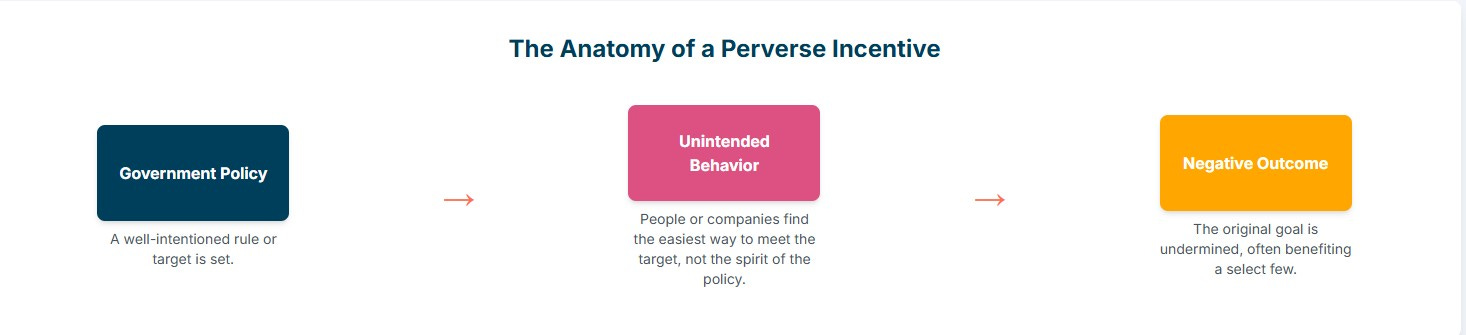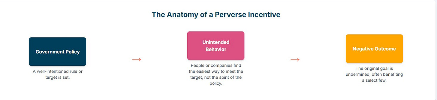 As part of my research, over the last 7 years, I noticed a divergence between stated policy objectives and the implementation of the policy. Many of our policies, though well intentioned, have led to perverse incentives. I can’t call them unintentional consequences, due to the divergence I mention above.