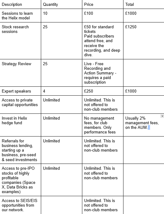 If you are sure of your financial capability (in step 1, and you have assessed the suitability in step 3), I’d highly recommend the Investor Club subscription, which gets you access to the 10 sessions of learning, exclusive events, as well as investment in Helix funds, without management fees. Otherwise you can buy tickets to the individual lessons and attend them.