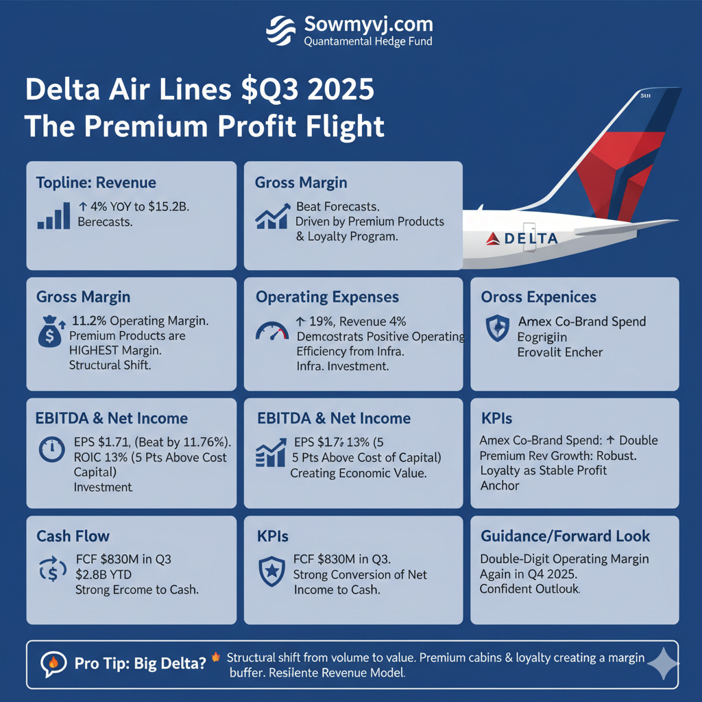 At Helix, our quantamental approach dictates that we look beyond headline numbers to identify structural shifts in a company’s business model. Delta Air Lines’ (DAL) Q3 2025 earnings release on October 9, 2025, wasn’t just an earnings beat—it was a definitive confirmation that the airline has fundamentally re-engineered its revenue base, prioritizing value over sheer volume.
